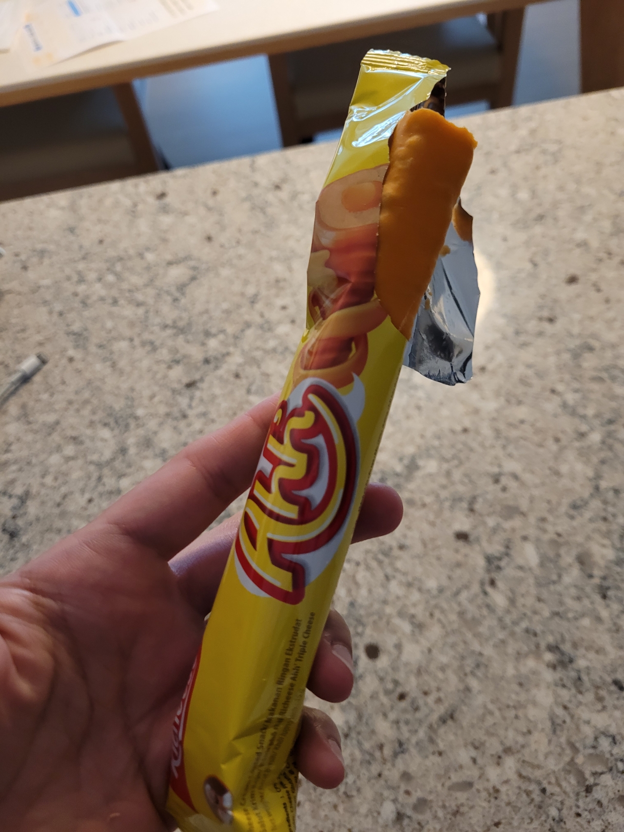 이 과자는 치즈맛 과자인데요, 추천받아서 구입했어요.