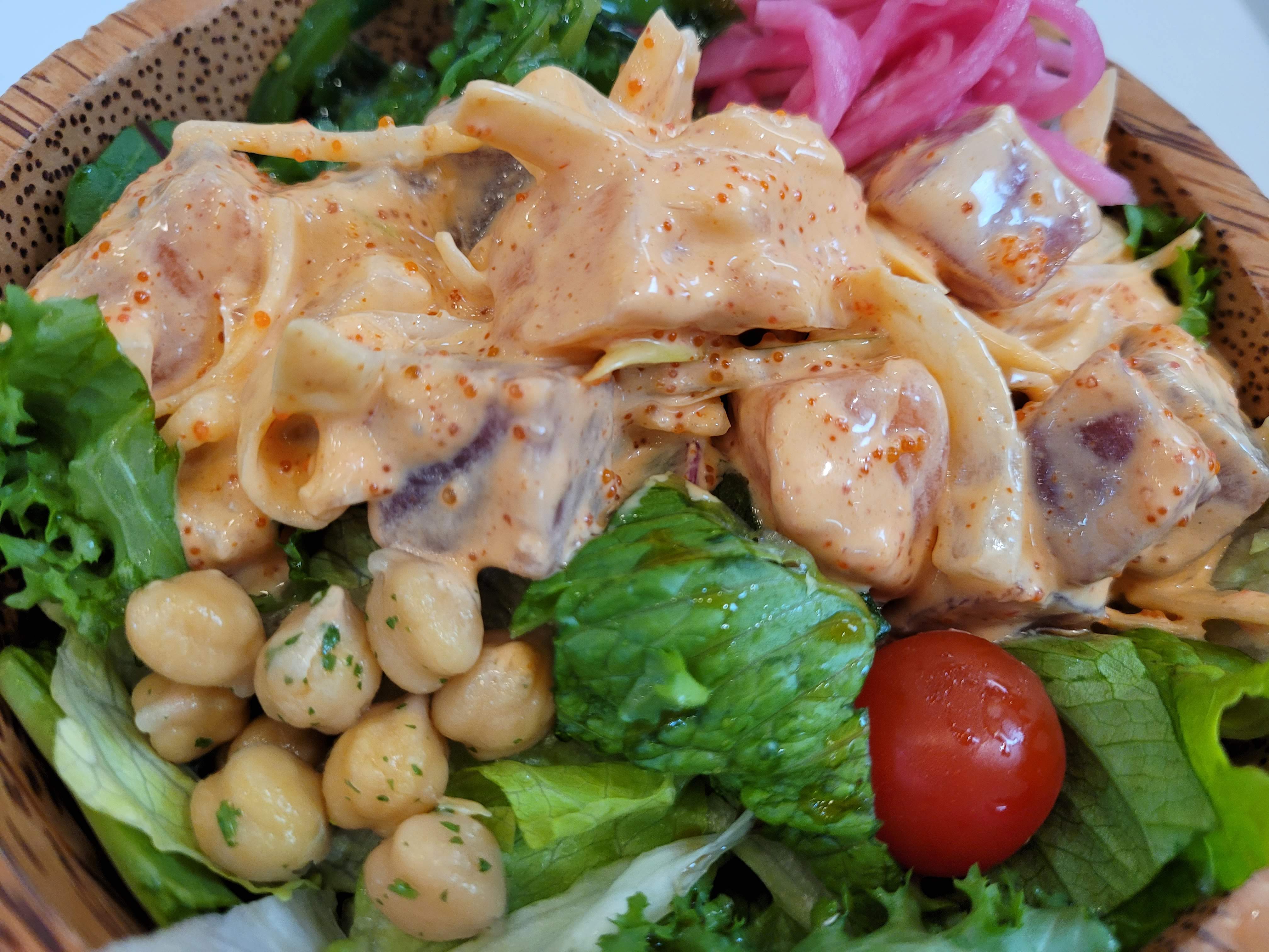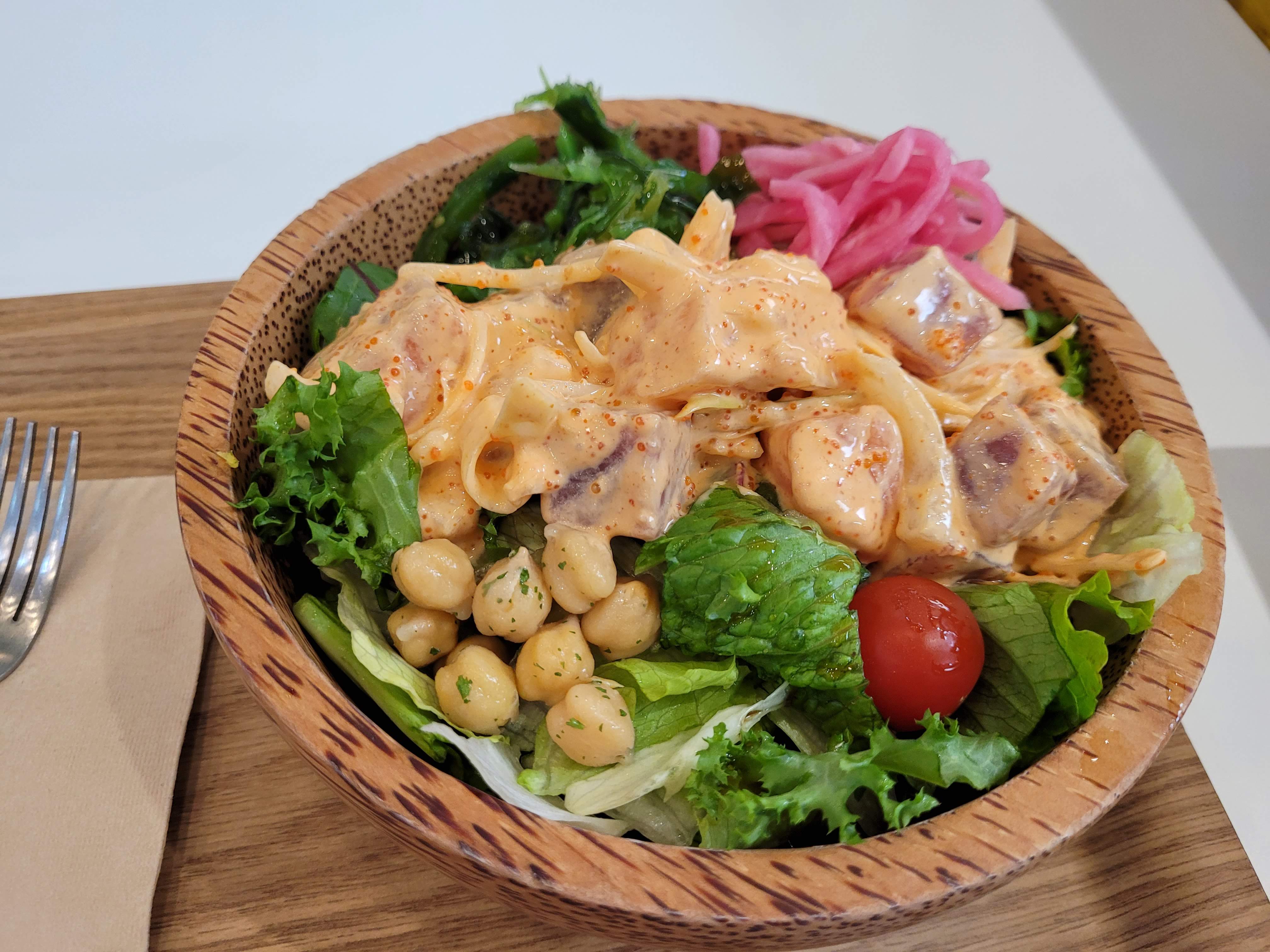 저는 튜나&살몬 포케로 했고 소스는 간장소스와 스파이시크림소스 중 택할수 있었어요.