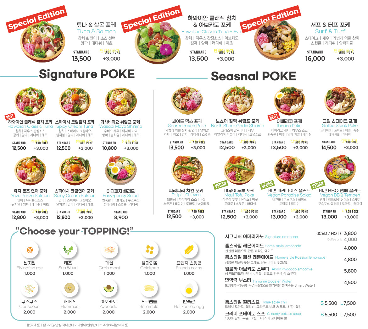 베스트메뉴는 하와이안 클래식 참치포케, 이베리코 포케에요.