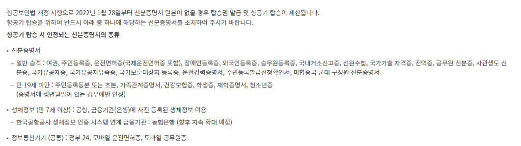 국내선 만 19세 미만 승객, 아기 인정되는 신분증