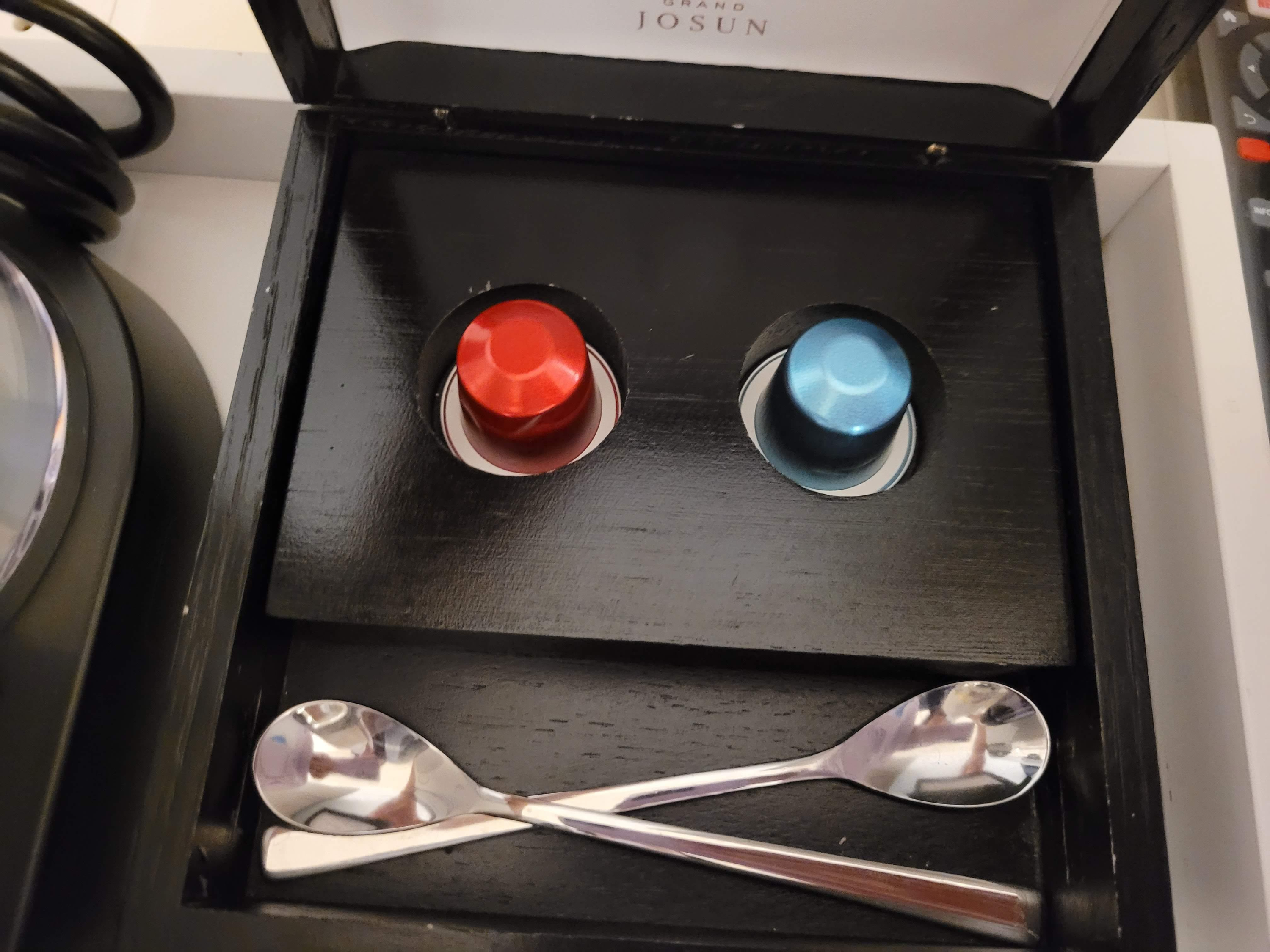 테이블 위에는 네스프레소 머신과 캡슐이 있었습니다.