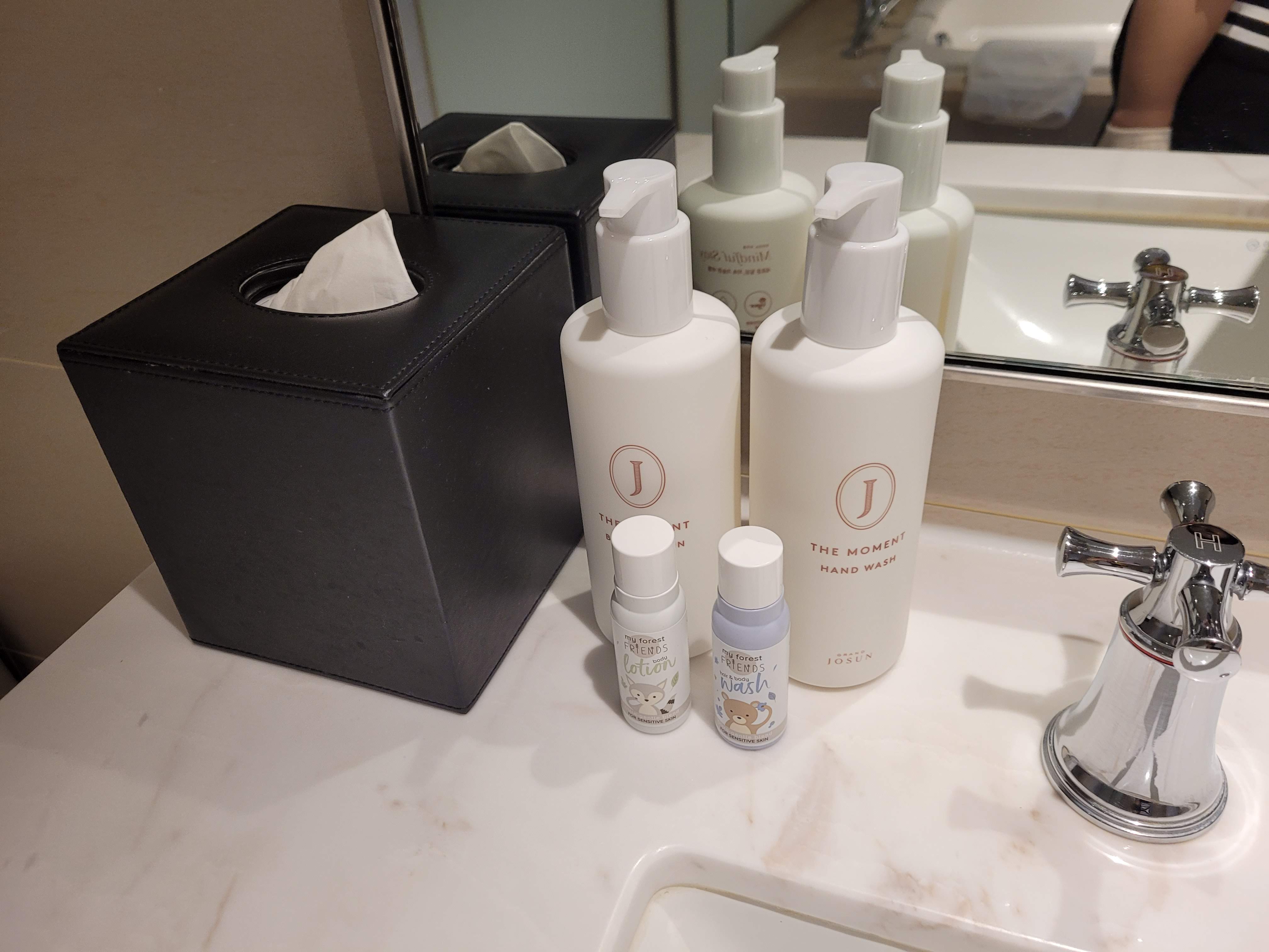 아기용 바디워시와 로션이 준비되어 있었고, 아기용 양치컵도 있네요.