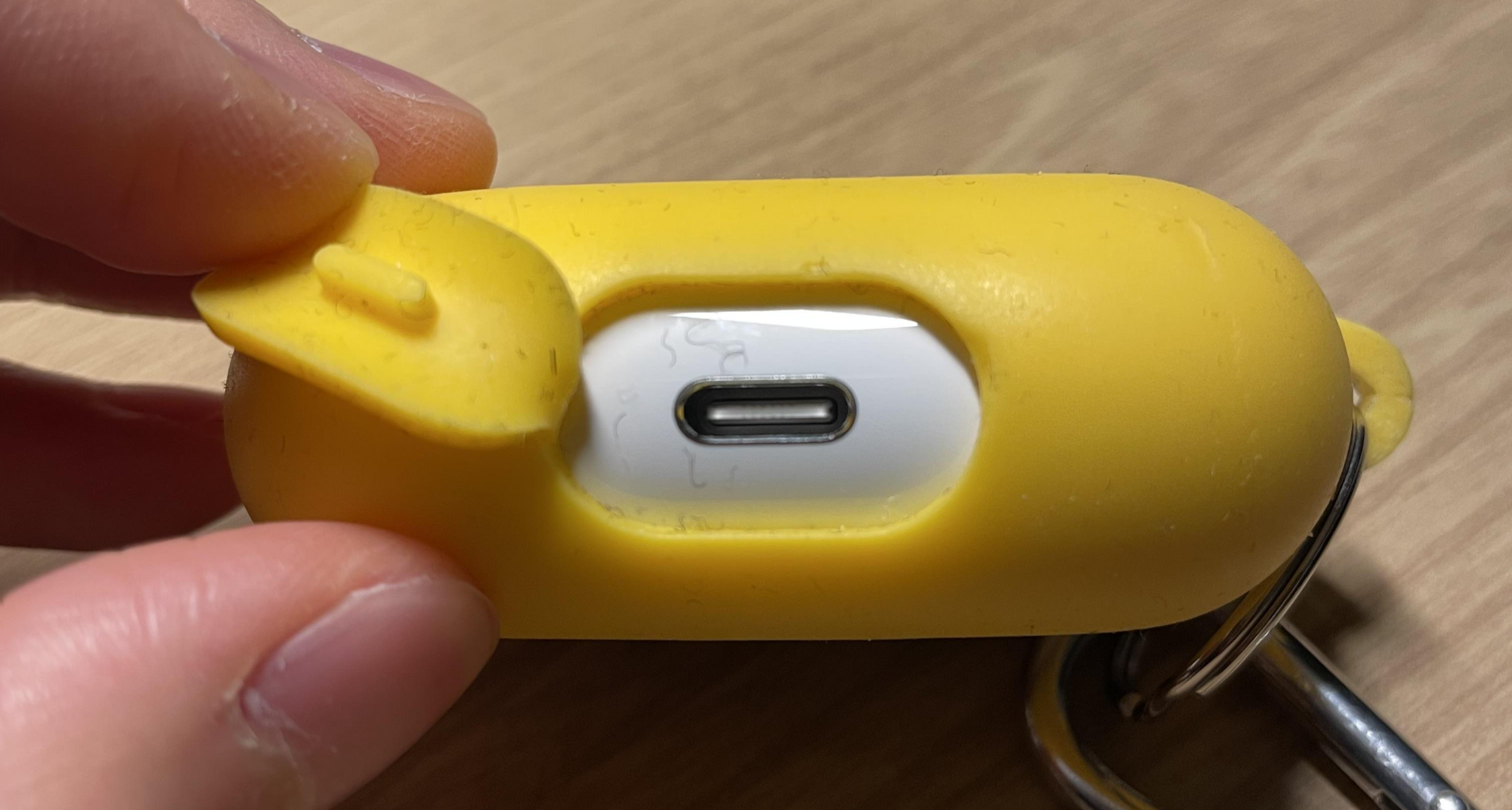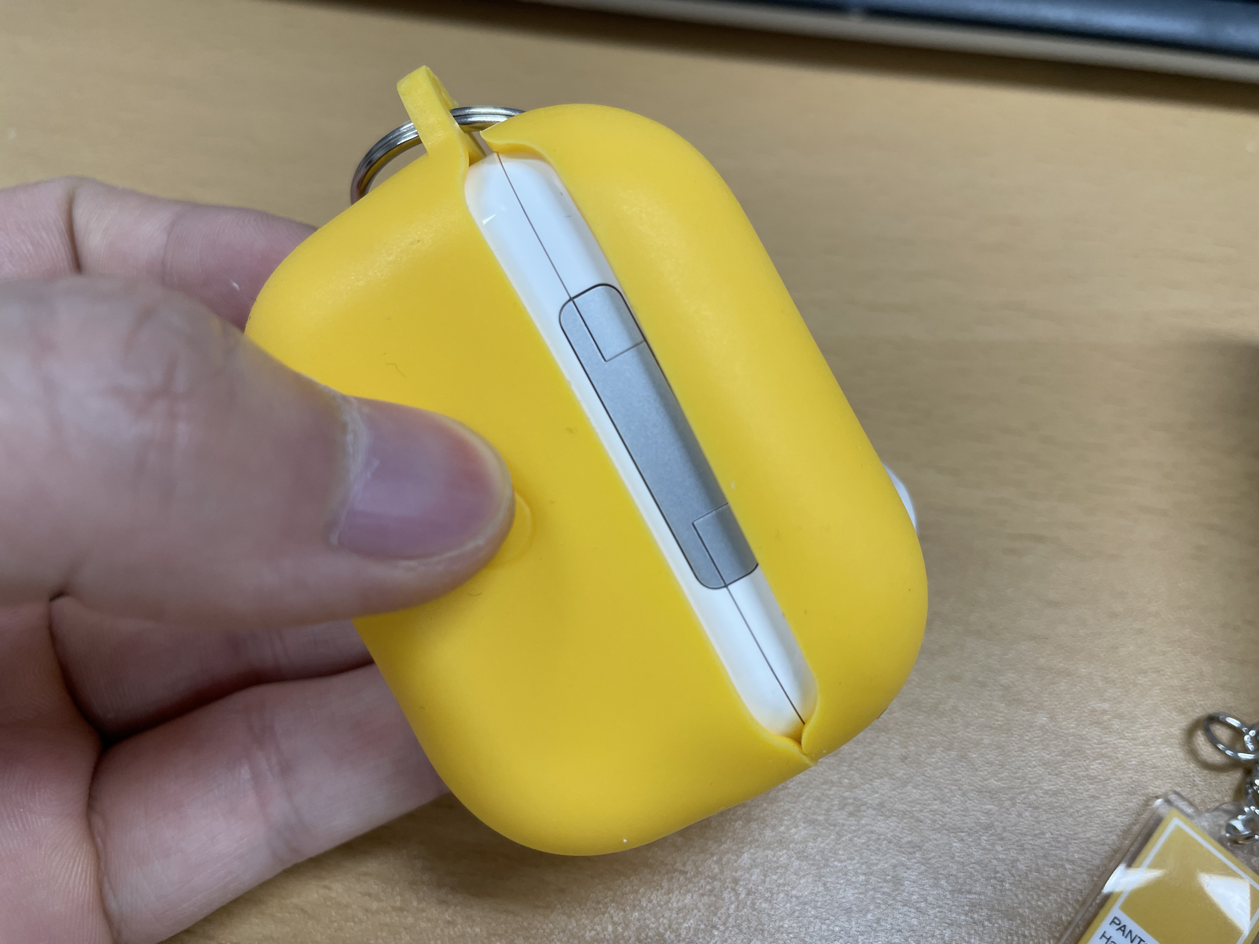 케이스가 일체형이 아니기 때문에 마감이 완벽하게 깔끔하진 않습니다. 상부 케이스가 핏하게 균형잡힌 모습이 아니고 약간 틀어져 보이네요. 팬톤 컬러 고리는 필요가 없어서 바로 서랍행입니다. 잘 열리고 잘 닫힙니다. 무선충전도 해봤는데 케이스를 낀 상태에서 충전에 이상은 없었습니다.