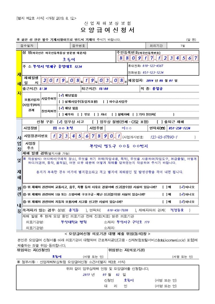 산재 접수방법/ 산재신청양식 작성법