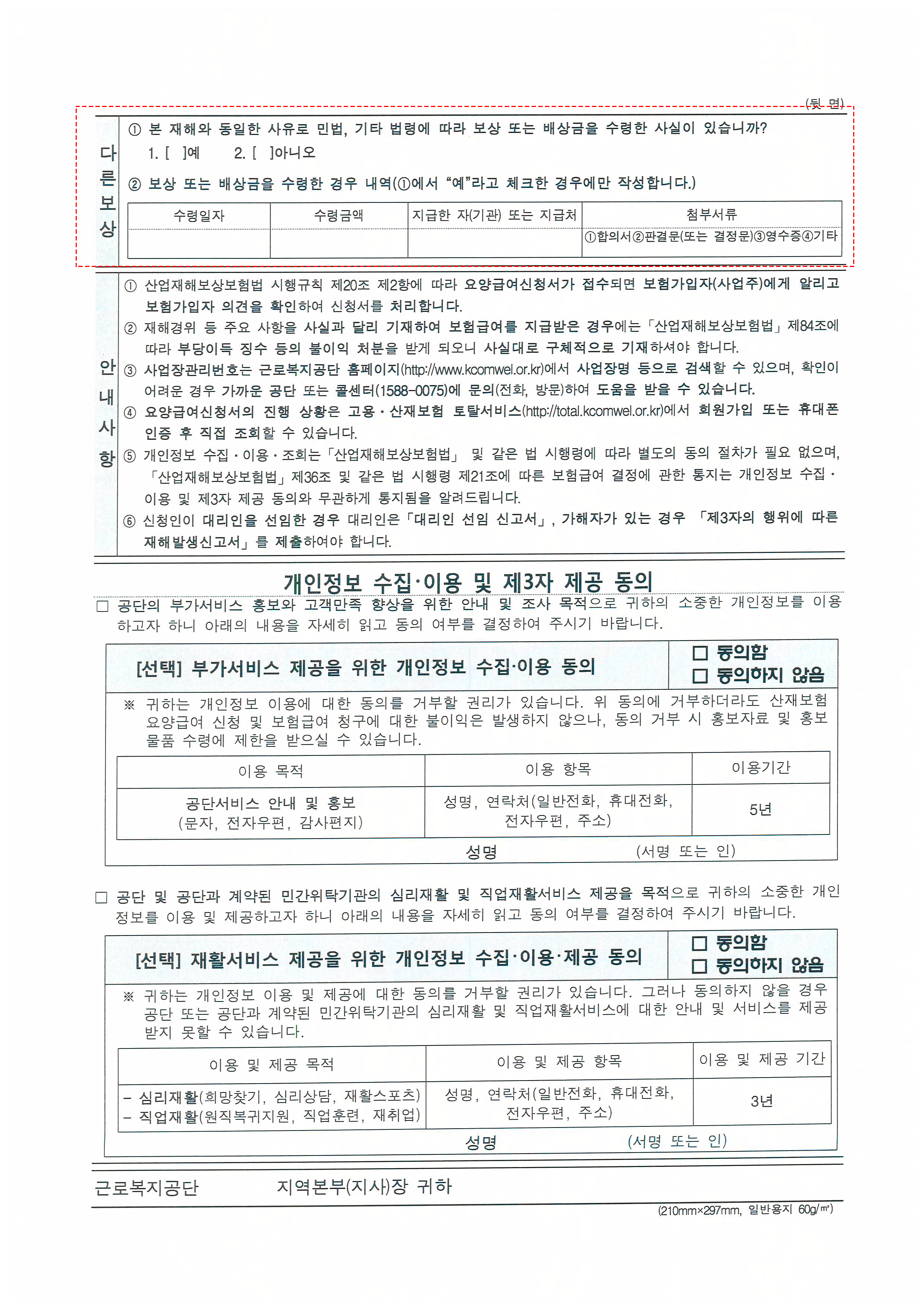 병원에 따라서 산재지정병원인 경우에는, 앞에 신청서(1번째장 2번째장)을 작성해서 병원에 제출하시면
