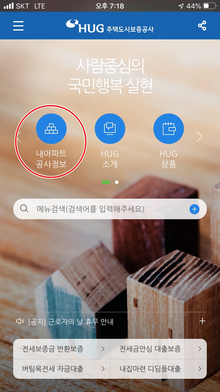 2. 앱을 실행한 다음 '내아파트공사정보'에 들어가세요.